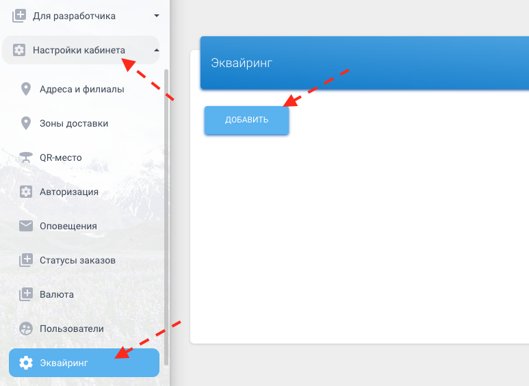 В разделе "Настройки кабинета" есть вкладка "Эквайринг"