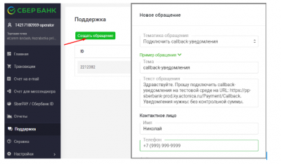 “Здравствуйте. Прошу подключить callback-уведомления на боевой среде на URL: https://pp-sberbank-v2.e-da.site/Payment/Callback. Уведомления нужны: без контрольной суммы.“