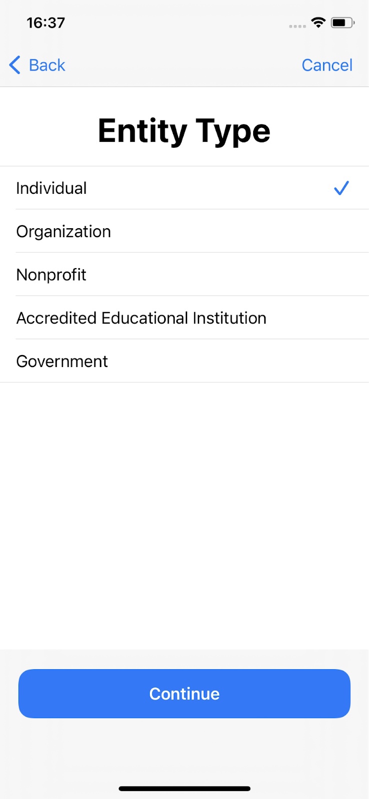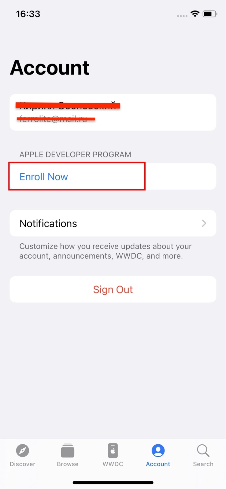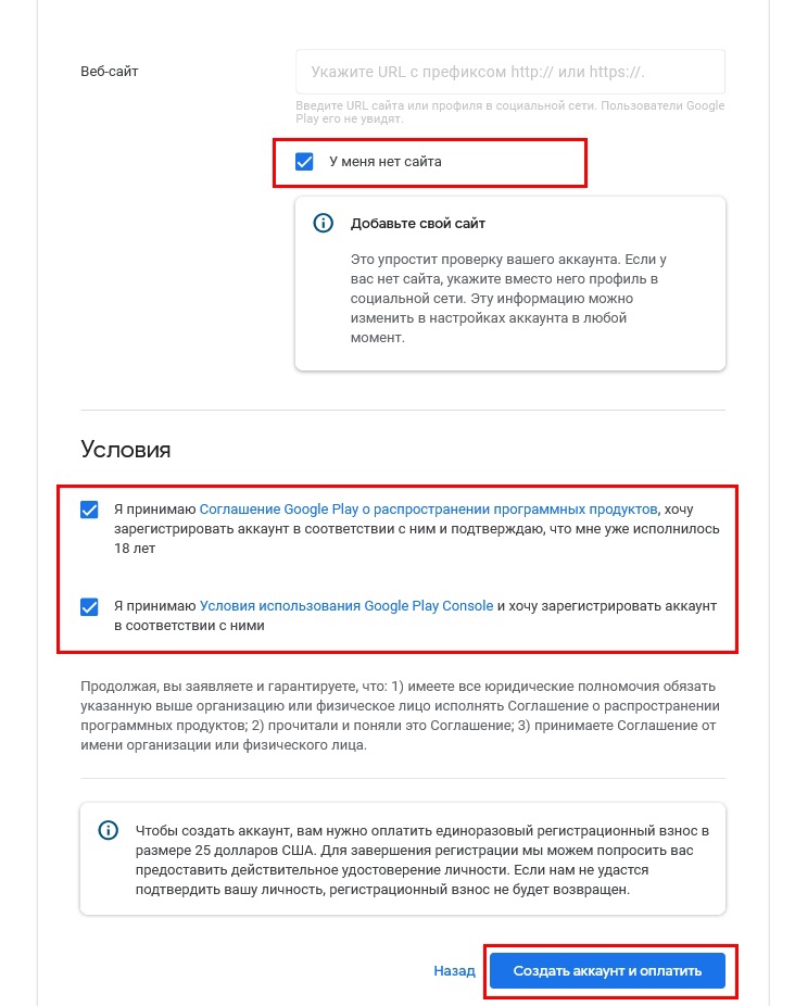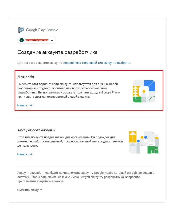 - На странице "Создание аккаунта разработчика" выбрать “Для себя”