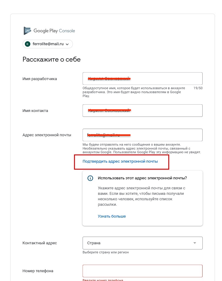 - Войти под той почтой, к которой будет в дальнейшем привязан аккаунт с приложением