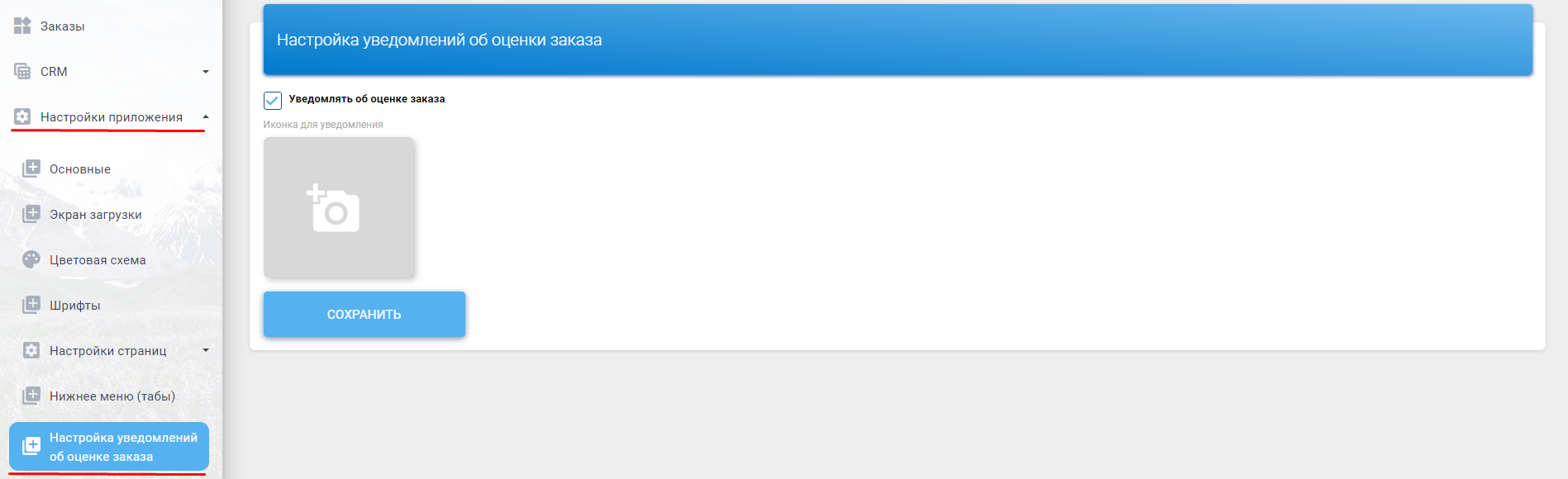 Также, есть возможность добавить иконку для уведомлений об оценке заказа: