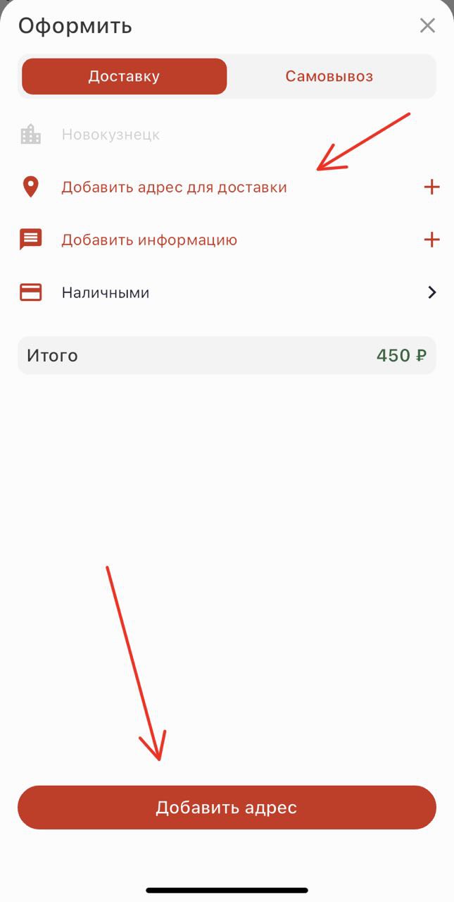 После того, как клиент выбрал город, он сразу может указать адрес на доставку нажав на надпись: Выберите адрес доставки (см. скриншот ниже):