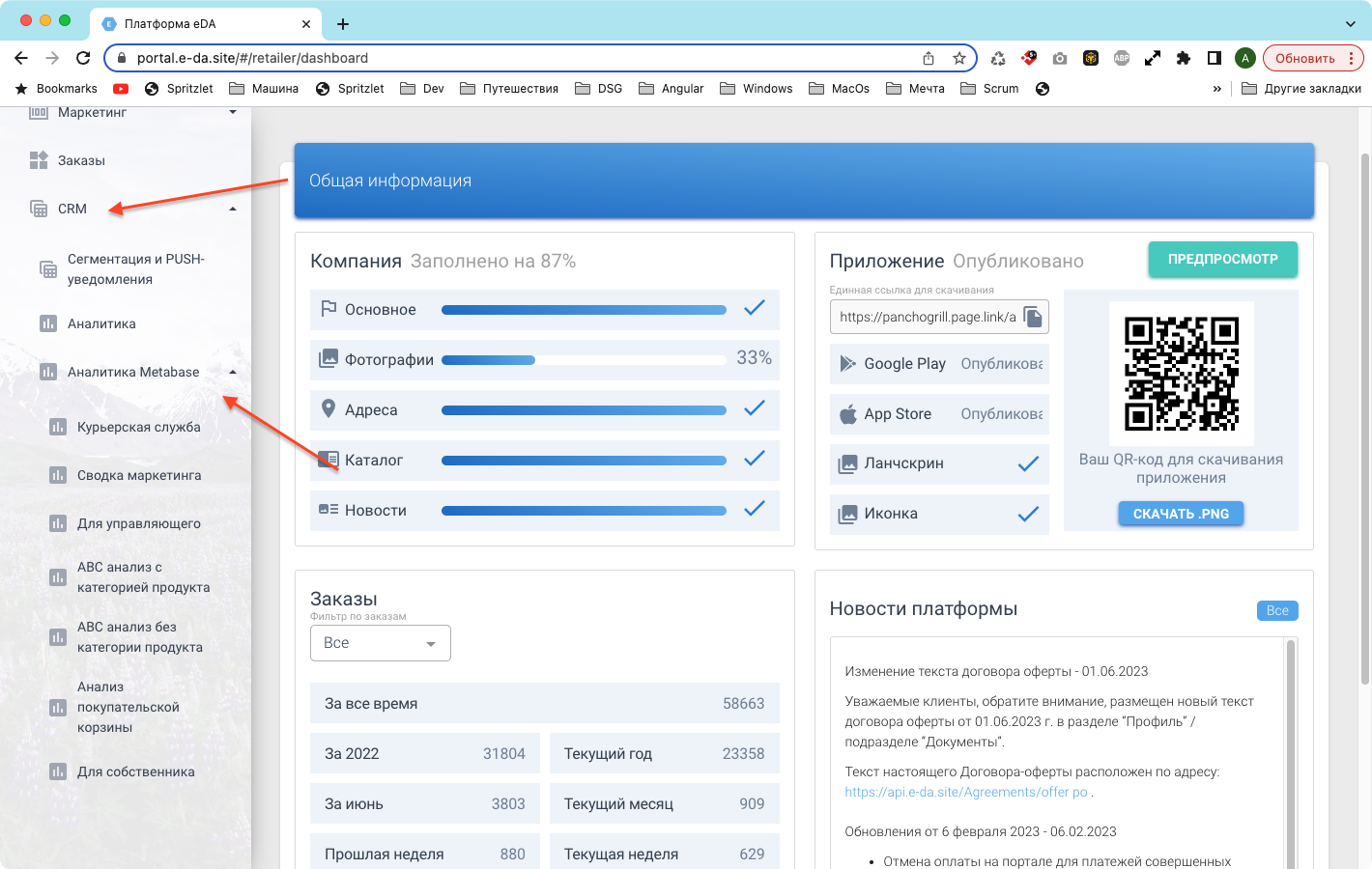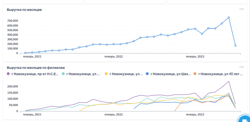 Панель аналитики позволяет детально изучить эффективность бизнеса, рекламы, рекламной кампании, доставки и рейтинг филиалов.