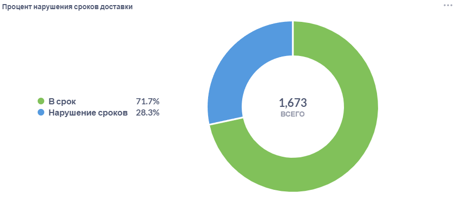 - «Процент нарушения сроков доставки» - это компонент, который отображает соотношение нарушения сроков доставки к доставкам без нарушений.