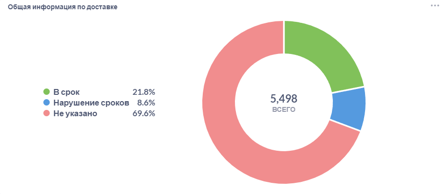 - «Общая информация по доставке» - это компонент, который отображает полное соотношение всех заказов с доставкой - т.е. заказы доставленные в срок, с нарушением срока и с не указанным статусом времени.