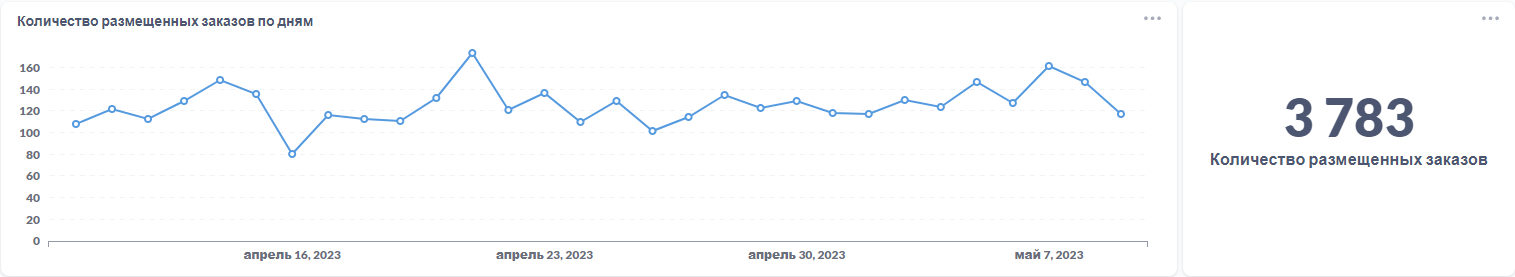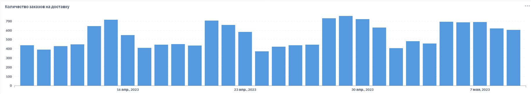 - «Количество заказов на доставку» - здесь на графике можно увидеть количество заказов с доставкой по дням.