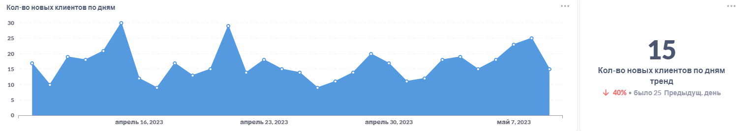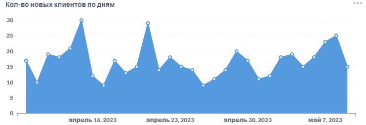 - «Кол-во новых клиентов по дням» - отображает количество новых клиентов по дням.