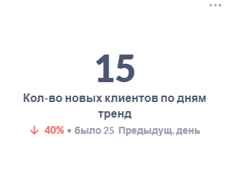 - «Кол-во новых клиентов по дням тренд» - отображает тренд по новым клиентам в сравнении с последними двумя днями (фильтры для этого компонента не работают).