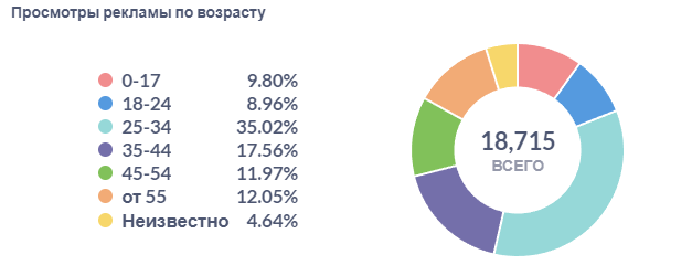 - «Просмотры рекламы по возрасту» - этот компонент позволяет посмотреть количество просмотров рекламы, распределенные по возрасту. В данный момент информация собирается только из Yandex.Direct.