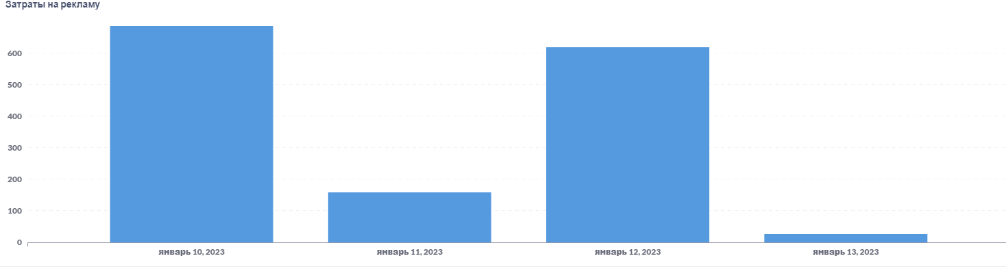 - «Затраты на рекламу» - представляет собой распределение затрат на показы рекламы в Yandex.Direct по дням, может отображаться в отрицательных значениях, если Yandex.Direct сможет как то посчитать профитность рекламы.