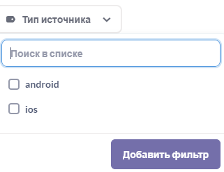 «Тип источника» - это фильтр для определения с какого устройства был сделан заказ. Данный фильтр работает только для компонентов «Выручка» и «Выручка по дням».