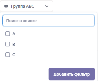 - "Группа ABC» - фильтрует записи по группе товара самого ABC-анализа.