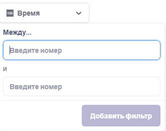 - «Время» - фильтр данных по промежутку времени. По умолчанию не установлен. При нажатии появятся два поля которые нужно заполнить числами, которые представляют собой часы, в которых будут выданы данные. Т.е. если написать в первом поле 13, а во втором 20, то будет выдана вся информация с часу дня, до 8-ми вечера.