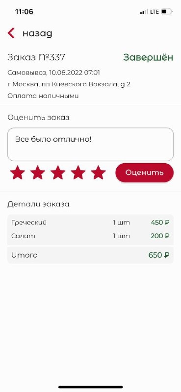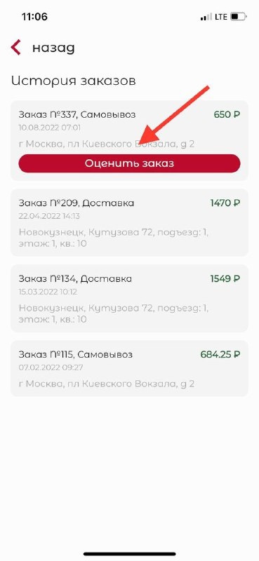 После оплаты каждый заказ попадает в историю. Там можно оставить отзывы на заказы, которые уже завершены. Чтобы перейти в историю заказов, откройте приложение и перейдите в профиль.