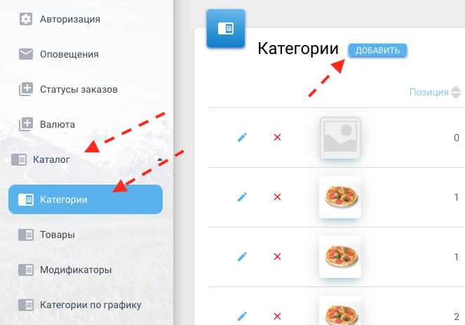 - На странице с категориями нажмите «Добавить» Создаем категорию по инструкции «Добавление категории»