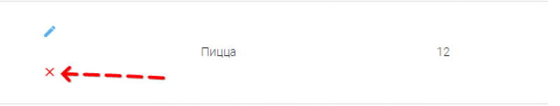Чтобы удалить категорию, нужно нажать на красный крестик в строке нужной категории товара