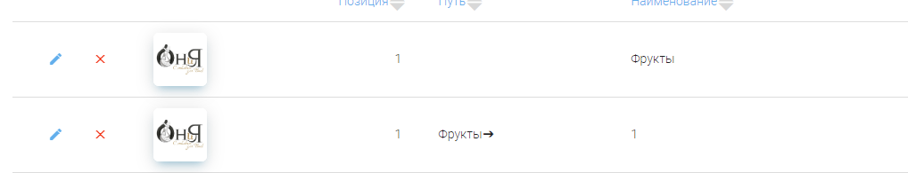 - Дочерняя категория назовем ее «Фрукты». У категории фрукты указываем Родительская категорию «1».
