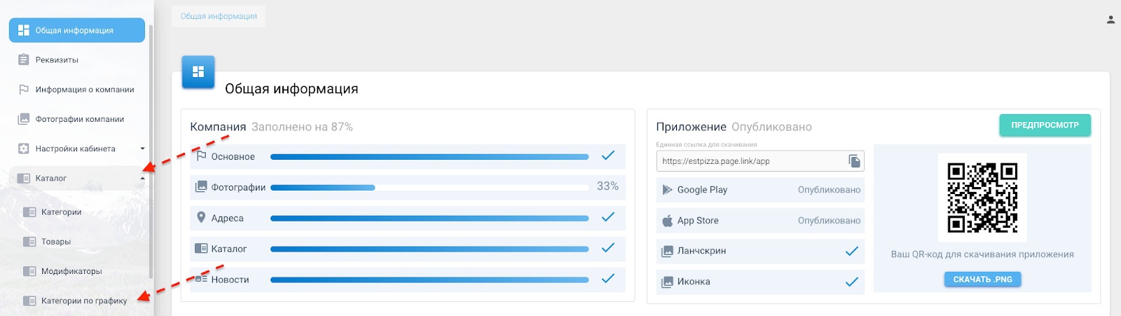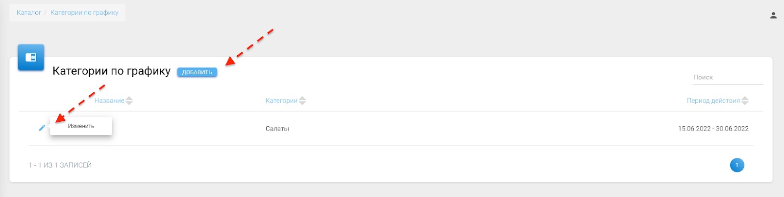 Когда все готово, на Платформе выберите раздел «Каталог» и нажмите вкладку «Категории по графику»