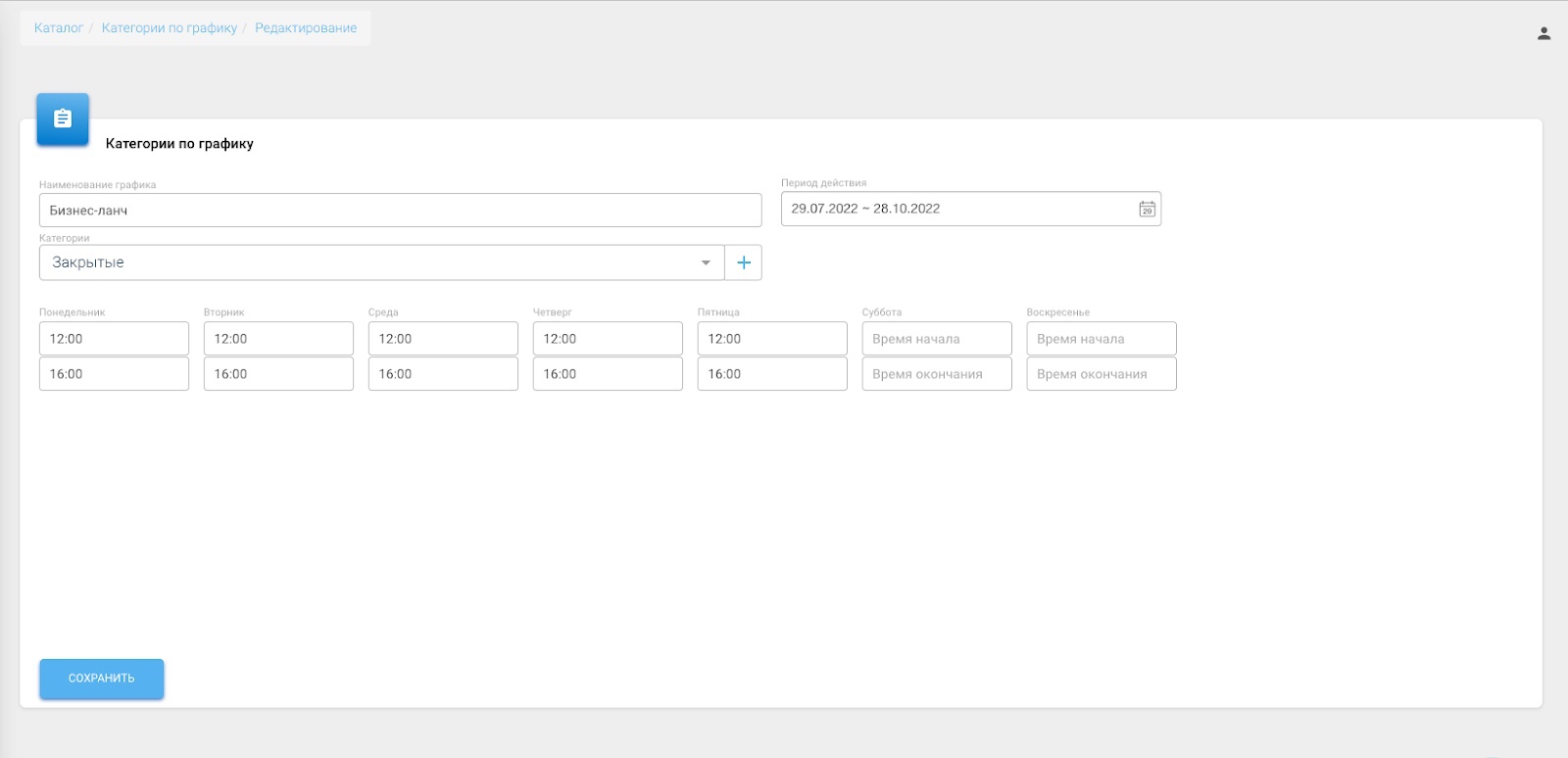 Эта функция Платформы позволяет Вам устанавливать отдельную категорию, которая будет работать ограниченное время. В остальные часы заказ из этой категории оплатить будет нельзя, однако она будет видна.
