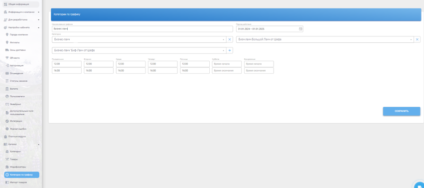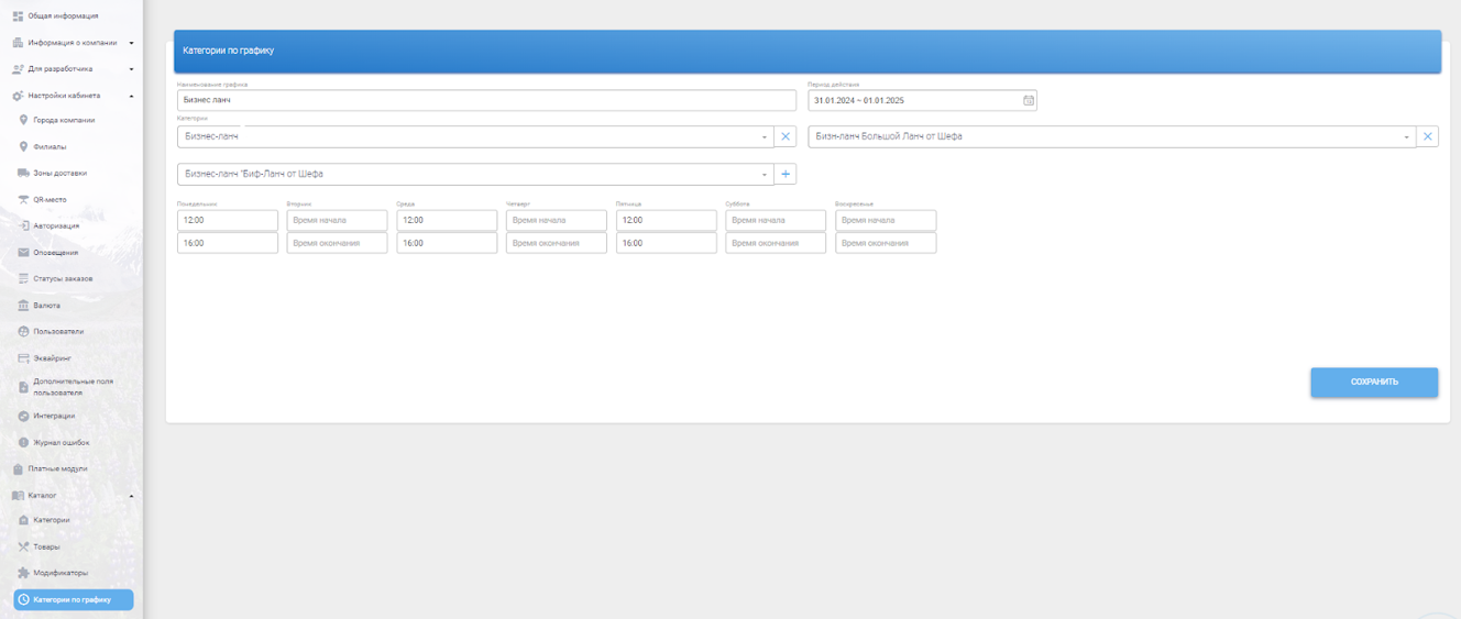 Прежде чем настроить график для категории "Бизнес Ланч", необходимо ее создать. Как создать, у нас есть подробная иснтрукция, смотреть здесь