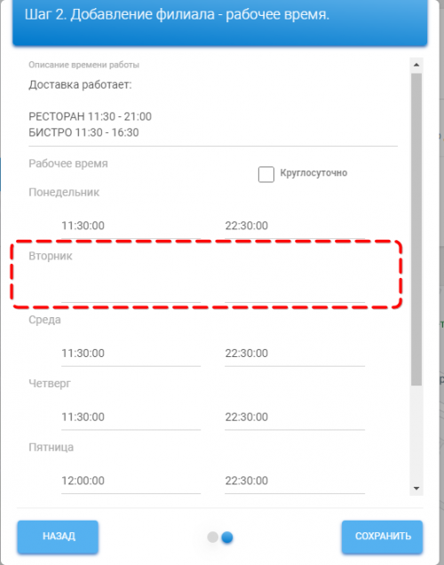 - По желанию измените описание времени работы. То, что вы напишете будет отображаться в мобильном приложении