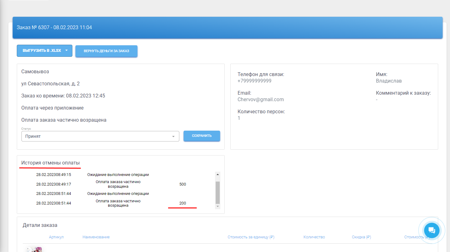 Отмена оплаты доступна только для заказов с оплатой через приложение.